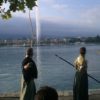 Arrivée du très sympathique attaché culturel du consulat du JAPON à GENEVE qui assiste au salut et au yawatashi d’ouverture de cette rencontre avant tout amicale. Pour cela Erick, Mireille et Christine bandent leurs arcs et lancent leurs flèches en direction de la rive sud de GENEVE et MIZU no MIKOTO qui était aux aguets s’élance en direction du ciel laissant bouche bée les spectateurs genevois qui pensaient qu’une flèche avait touché une conduite du service des eaux et qui réalisent soudainement que ce n’est pas un incident mais bien une main divine qui a ouvert la vanne!